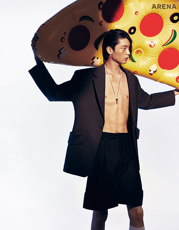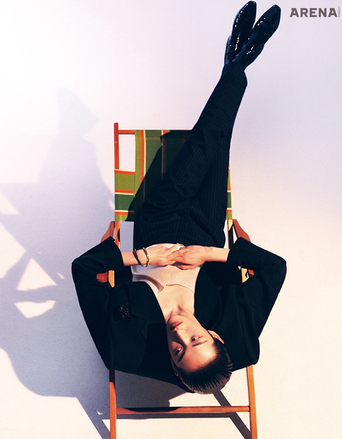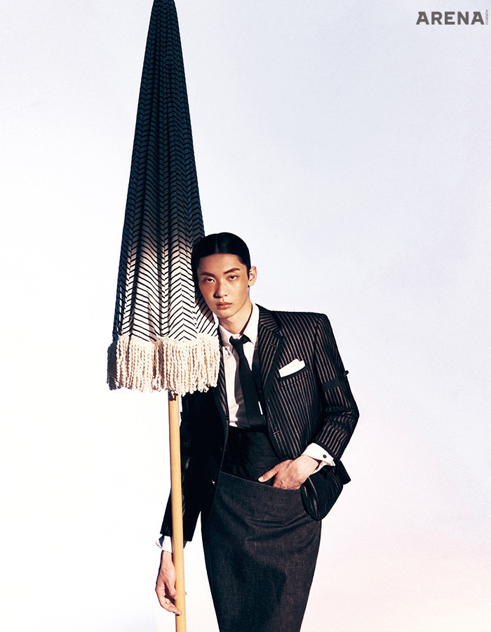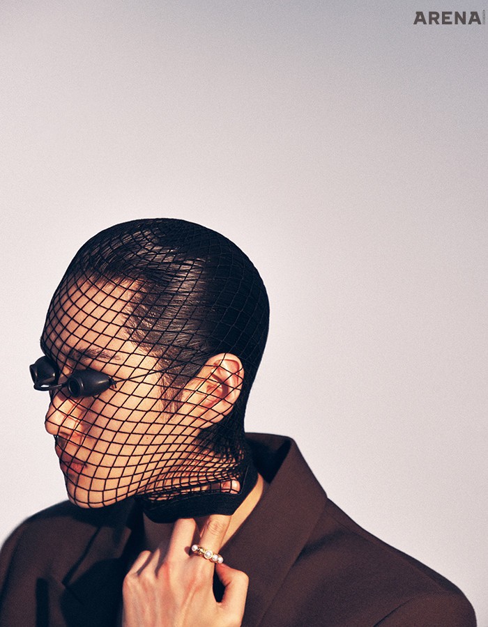 싱글브레스트 재킷·핑크 셔츠·비니·실크 타이 모두 가격미정 프라다, 물안경 에디터 소장품.