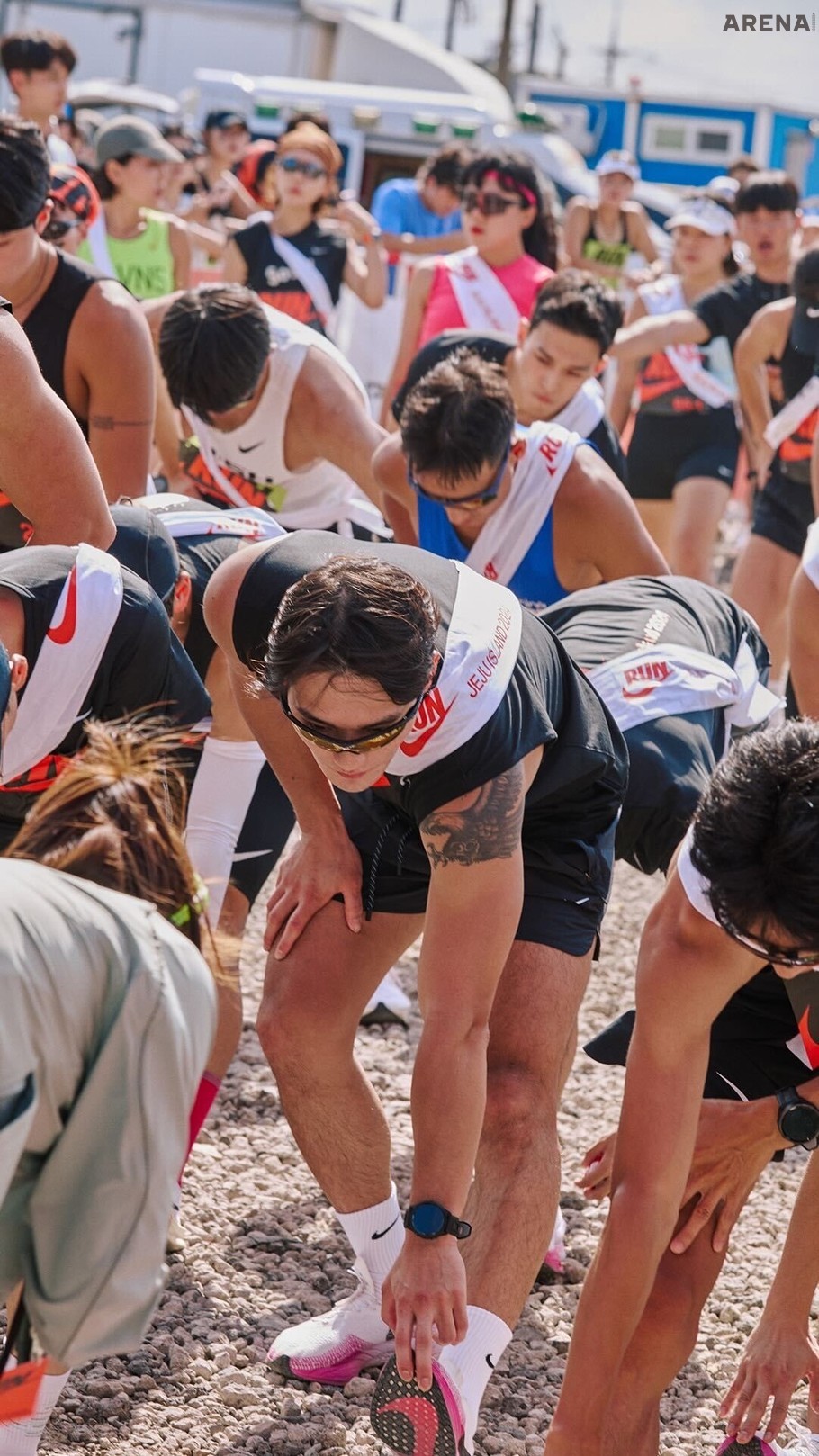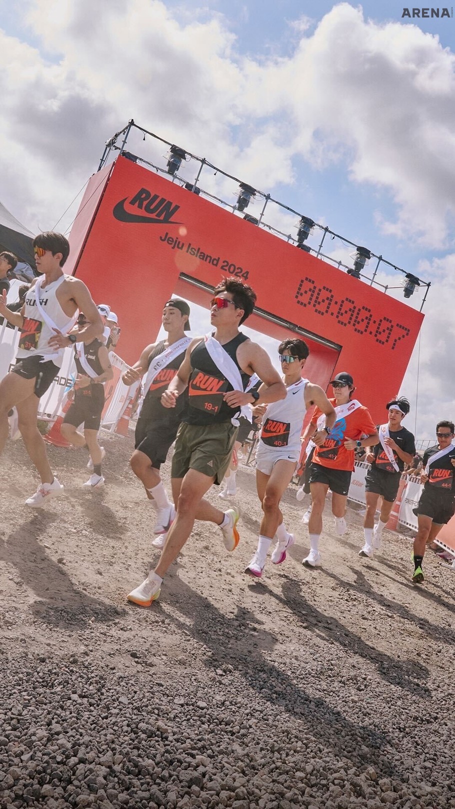 올해는 나이키 러닝화의 굵직한 기둥인 나이키 페가수스 탄생 40주년과 페가수스 41 출시를 기념해 이전과 남다른 규모의 특별한 레이스를 준비했다. 나이키가 올해 개최한 대회는 ‘나이키 런 제주 2024’. 제주도에서 진행하는 이번 대회는 4명이 한 조를 이룬 남성, 여성팀이 페가수스 41에 맞춰 제주도 동쪽 해안 41km를 나눠 달리는 대회다. 예선전은 여느 마라톤 대회를 방불케할 정도로 전국의 수많은 러너가 참가했다. 남성, 여성팀 각 35팀, 총 280명을 뽑는 자리에 총 720팀, 2880명인 약 10배에 달하는 러너들이 한곳에 모였다. 예선 방식은 800m를 가장 빨리 돌파하는 남, 여 각 35팀이 본선에 진출하는 방식이다. 800m를 2분대에 들어와야 안정적으로 결선에 갈 수 있었던 만큼 전국의 러닝 고수들이 모두 집결했다.