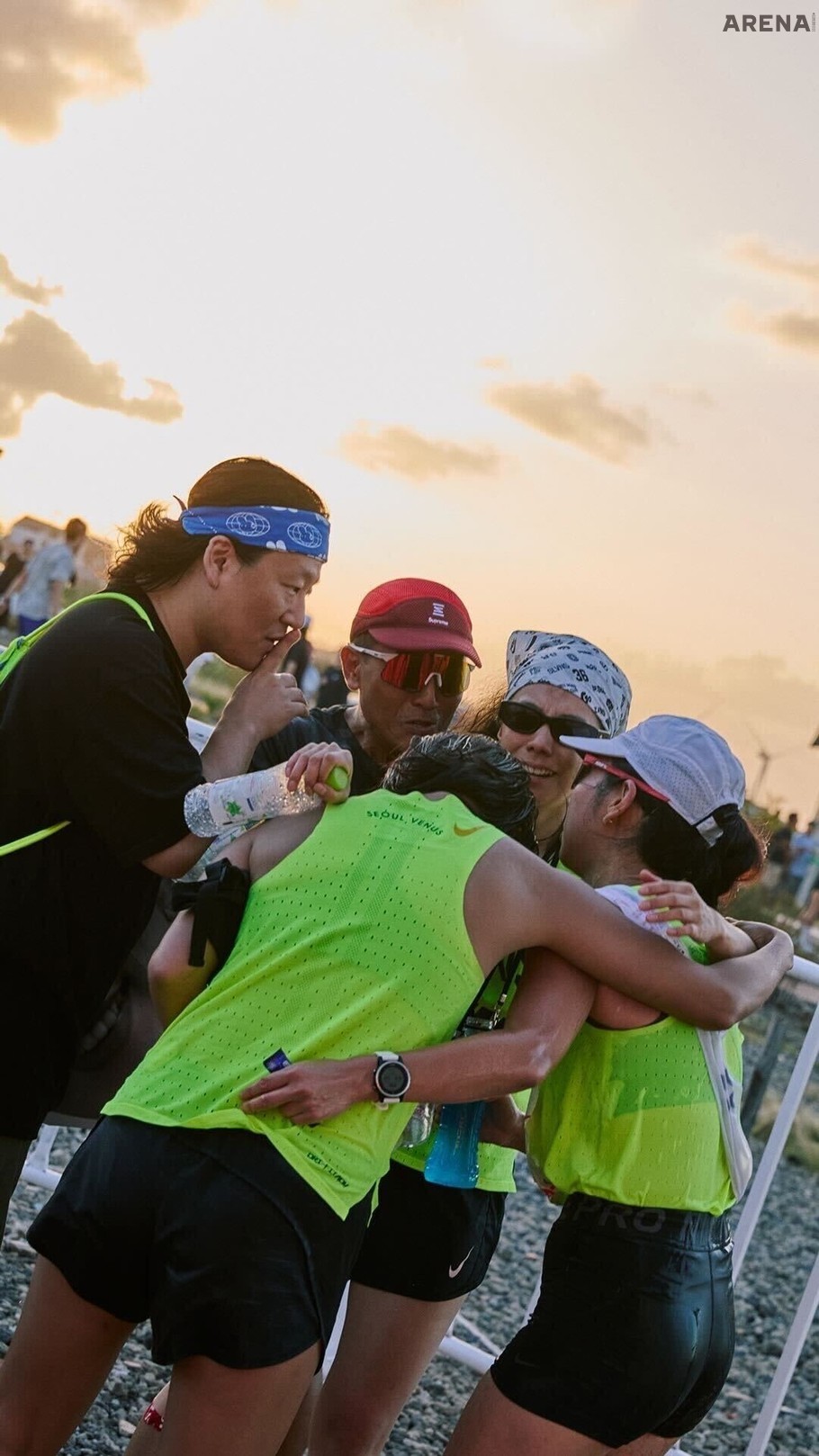 그간 나이키 러닝화를 견인해온 페가수스의 노고를 인정하듯, 이번 대회 규모는 지금껏 선보였던 대회와 사뭇 달랐다. 선발된 280명의 러너들은 나이키 스우시 로고가 랩핑 된 제주항공 전용기를 탑승해 여정에 나섰으며, 대회 베이스캠프인 카멜 커피 제주에서는 팀 포토 서비스, 응원도구 제작 프로그램, 해변 스트레칭, 스포츠 마사지 등 마치 페스티벌과 같은 다양한 러닝 이벤트를 누릴 수 있었다. 제주도에 도착 후 여러 이벤트를 자유롭게 즐김과 동시에 본격적인 대회는 오후 2시 30분에 시작됐다. 대회는 베이스캠프인 코난해변: 카멜커피를 시작으로 1번과 3번 주자가 김녕 해수욕장을 반환하며 11.1km를 달리고, 2, 4번 주자는 코난 해변: 카멜 커피를 시작으로 평대포구를 반환하며 9.4km를 달리는 코스다. 입상과는 무관하게 미디어팀 초청으로 참석했기 때문에 승부와 경쟁보다는 즐기면서 뛰자는 마음으로 대회에 참석했지만, 치열한 예선 결과와 대회장에 감도는 러너들의 보이지 않는 신경전과 열기 덕에 마냥 즐길 수만은 없었다. 특히 이번 대회는 컷오프가 4시간이었기에, 주자 별로 1시간 안에는 들어와야 완주가 가능했다. 대회 시작 1시간 전부터 몸을 풀고, 30분 전부터 1번 주자들이 주로에 서기 시작하는데 왜 이리 가슴이 벅차오르고 울컥하는지. 그간 잊고 있었던 러닝에 대한 기쁨과 스포츠가 선사하는 특유의 에너지를 잊고 살았던 까닭에 이 모든 순간이 소중하고 값지게 느껴졌다. 게다가 현장을 둘러보니 러너들의 얼굴과 자세에서 무결할 정도로 순수함을 느꼈다. 그렇기에 그들을 존중 할 수밖에 없었고, 나 또한 단순한 취재가 아닌 진심을 다해 대회에 임할 수밖에 없었다.