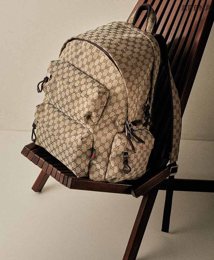 사바토 데 사르노가 구찌에 부임한 뒤 처음으로 선보인 남성복 컬렉션에선 이전과는 달리 몸집을 불린 가방들이 연달아 등장했다. 구찌 하우스의 역사를 대변하는 재키 백부터 새로운 디자인의 호보백, 토트백, 그리고 GG 로고를 가득 채운 백팩 역시 마찬가지였다. 남다른 크기와 빼곡한 패턴으로 대단한 존재감을 뽐낸 백팩은 전면과 옆면에 주머니를 더해 스포티한 느낌으로 완성했다. 캐주얼 차림에 쉽게 어울리겠지만, 런웨이 모델처럼 클래식한 수트와 의외의 조합을 연출하는 것이 이 가방의 쓸모엔 더 맞아 보인다.