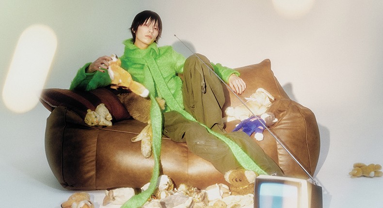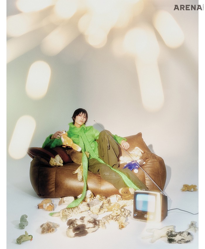 니트 소재 보 셔츠·벌룬 카고 팬츠 모두 가격미정 로에베 제품.