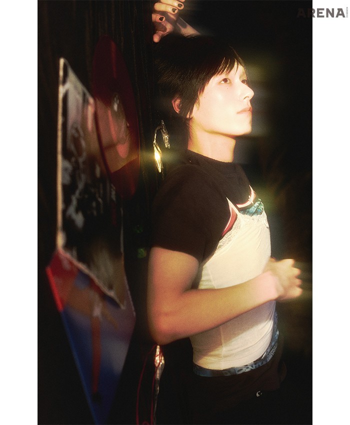 검은색 티셔츠·레이어드한 슬리브리스 톱 모두 가격미정 발렌시아가 제품.