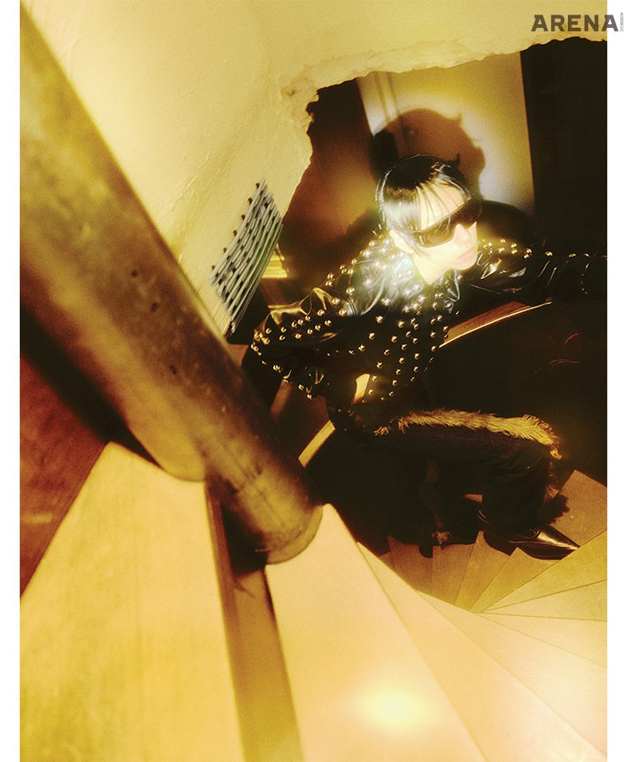 스터드 장식 레더 재킷·퍼 트리밍 디테일 데님 팬츠·브로그 슈즈·투톤 선글라스 모두 가격미정 맥퀸 by 션 맥기르 제품.