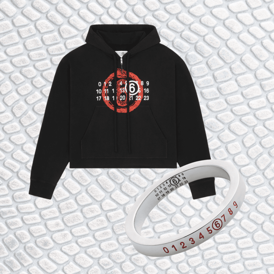 0부터 23까지 각기 다른 의미를 담고 있는 메종 마르지엘라의 숫자들 중, MM6을 상징하는 숫자 6을 뱀이 몸을 감고 있는 형태로 재해석해 대담한 그래픽으로 표현한 아이템들을 공개했다. 특히 미니멀한 숫자 반지는 행운을 의미하는 빨간색의 MM6 시그너처 숫자가 특징이다.