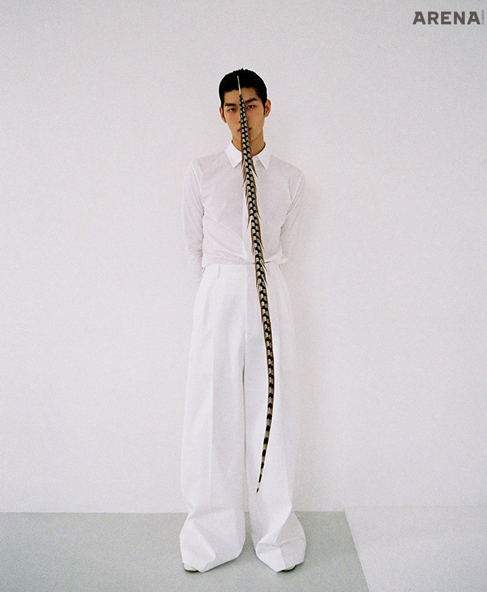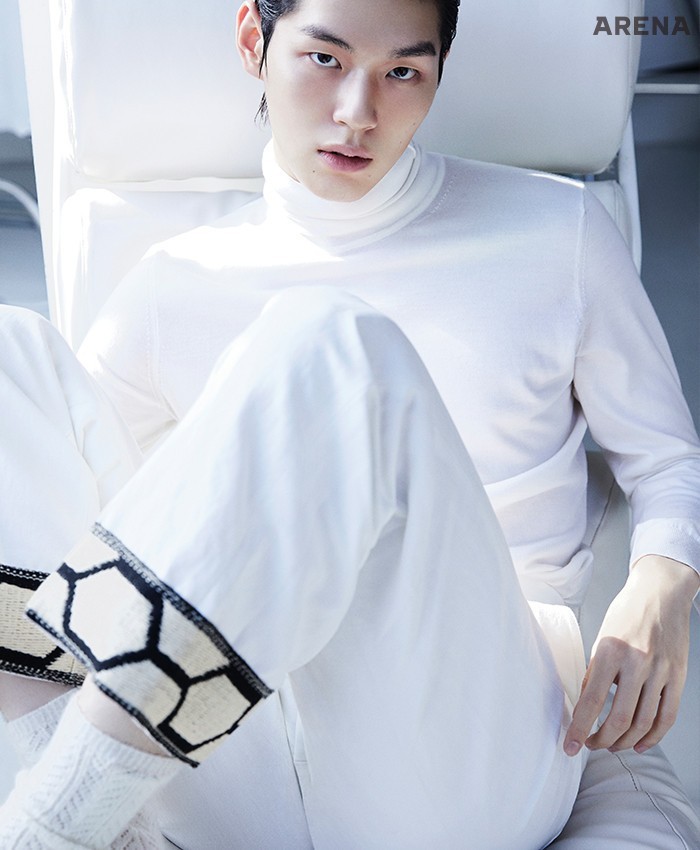 터틀넥 톱 가격미정 제냐, 기하학적인 패턴을 더한 리넨 팬츠 210만원·펀칭 디테일 양말 가격미정 모두 발렌티노제품.