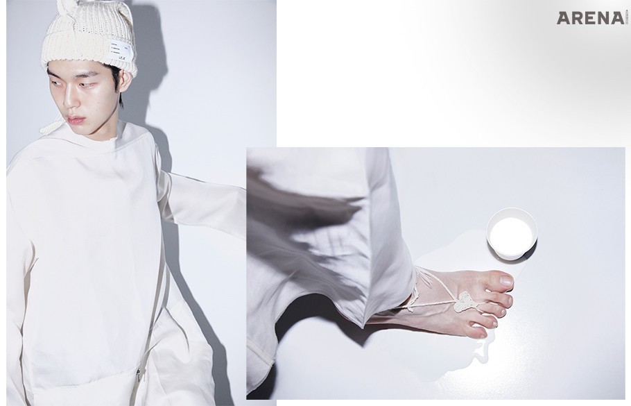 후드 디테일을 레이어드한 블루종 178만원·와이드 조거 팬츠 73만원 모두 무홍 제품.