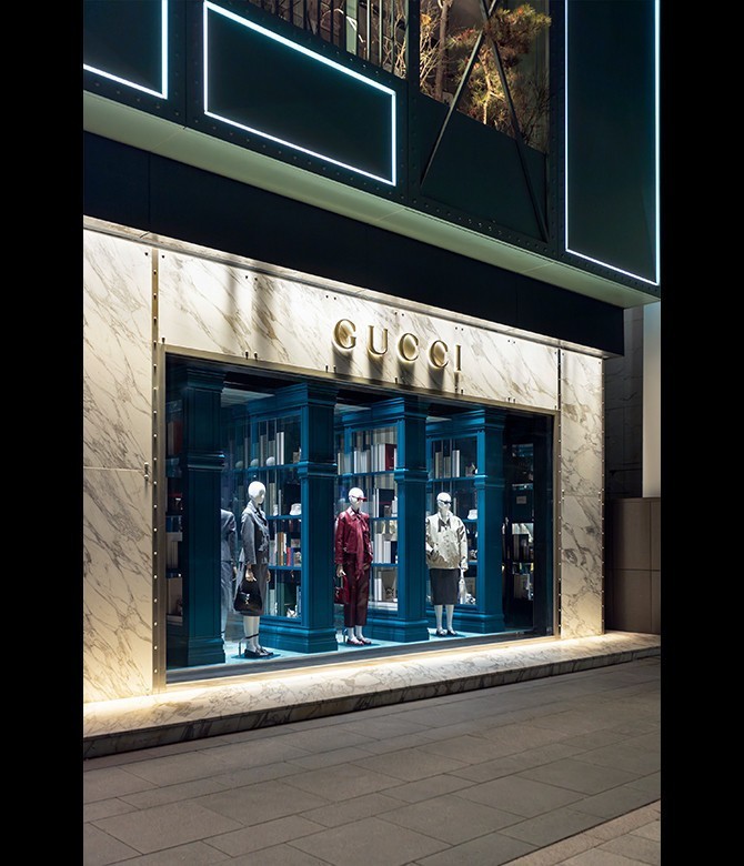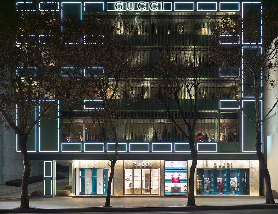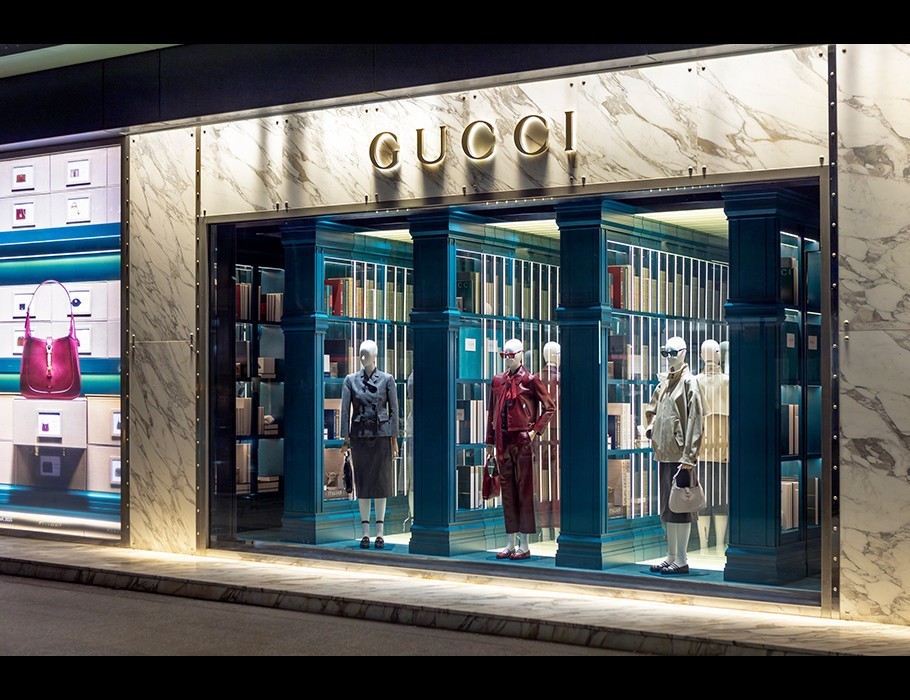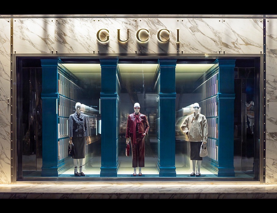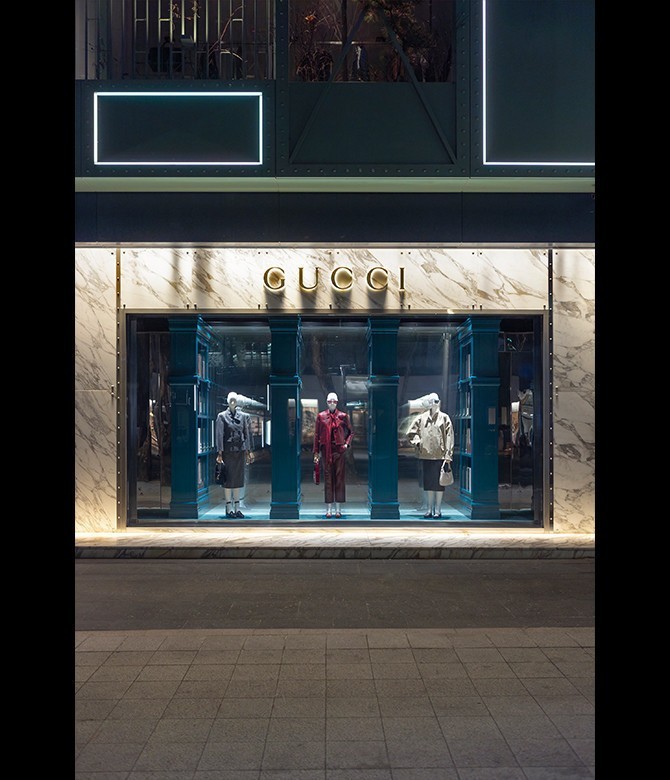 구찌 청담 플래그십 스토어 윈도우 전경.