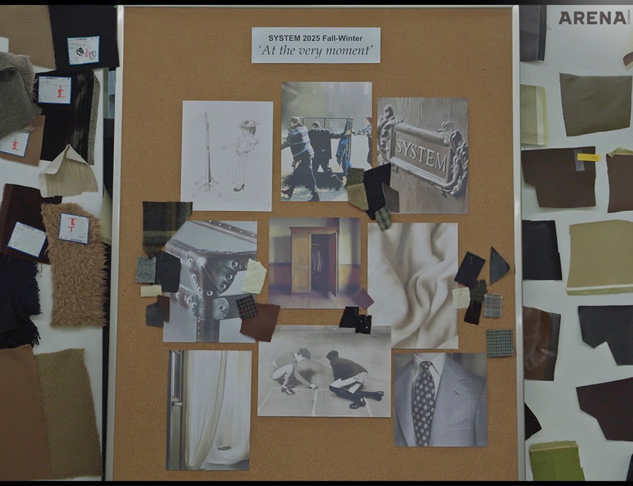 2025 F/W 컬렉션의 주제는 ‘At The Very Moment’다. 20세기 미국 화가 노먼 록웰의 작품 ‘Dressing up’이 떠오르기도 한다. 부모님 옷장에서 옷을 꺼내 입어보곤 했던 호기심 많던 유년 시절. 어른에 대한 호기심, 동경 그리고 깊은 애정이 얽힌 행위가 잔상으로 남았다. 이번 컬렉션을 통해 순수했던 유년 시절을 브랜드 고유의 시선으로 바라보고자 한다. 부모님 옷장에 걸려 있던 모직 코트, 체크 셔츠, 스카프 등 친숙한 아이템을 상상하며, 이 아이템들이 간직한 클래식 요소를 현대적으로 해석하는 데 집중했다. 자칫 빈티지해 보일 수 있지만 SYSTEM만의 정체성을 살려 웨어러블하게 중심을 잡고자 했다.