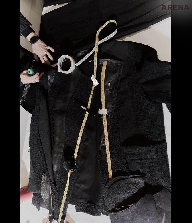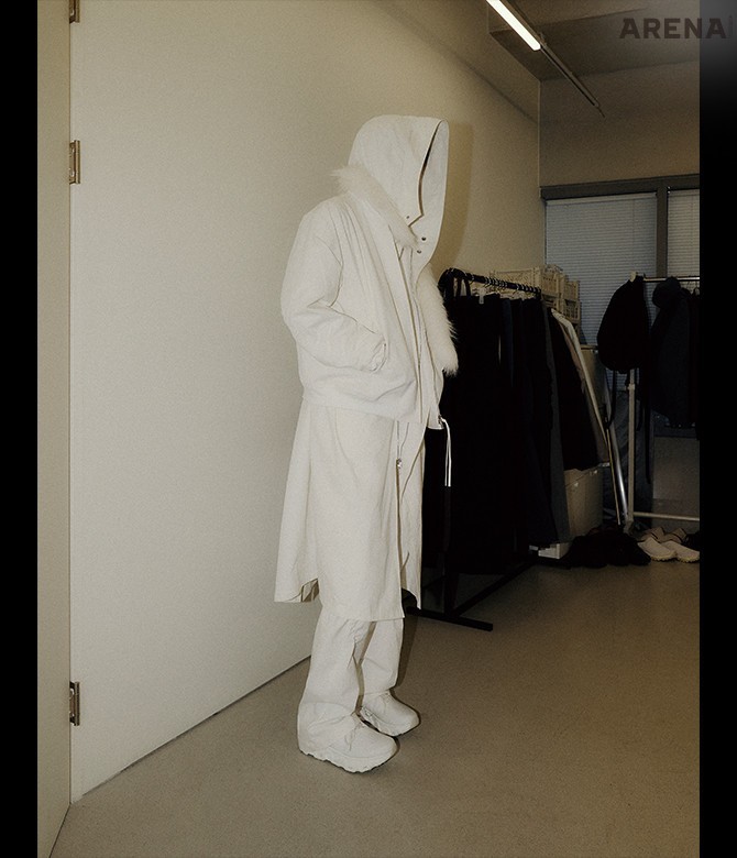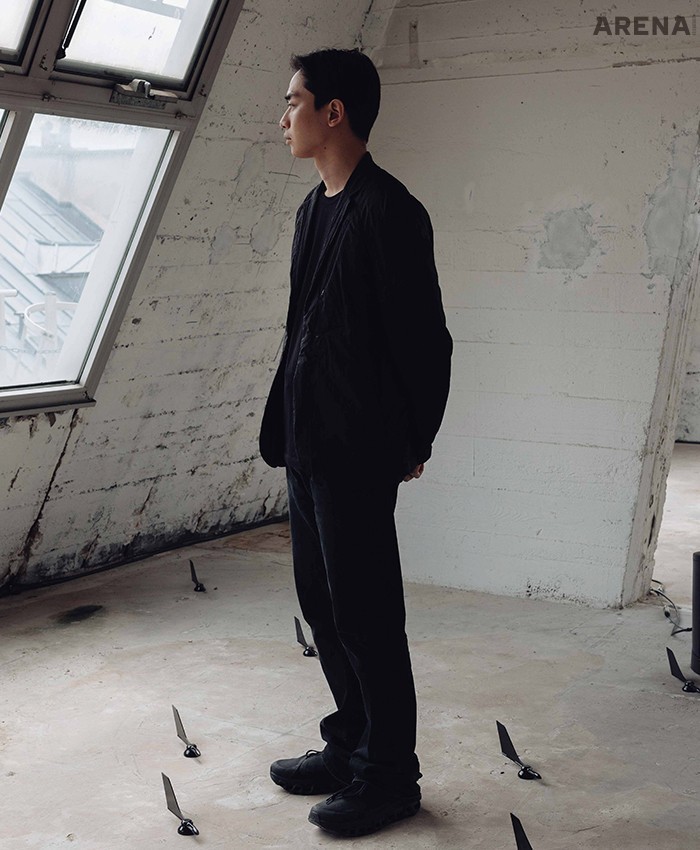 <아레나>에 선공개한 착장. 완성작은 파리 맨즈 패션위크 2025 F/W에서 볼 수 있다.