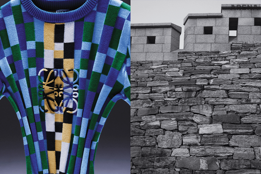 가지각색의 사각형을 교차해 완성한 스웨터 가격미정 로에베 제품.