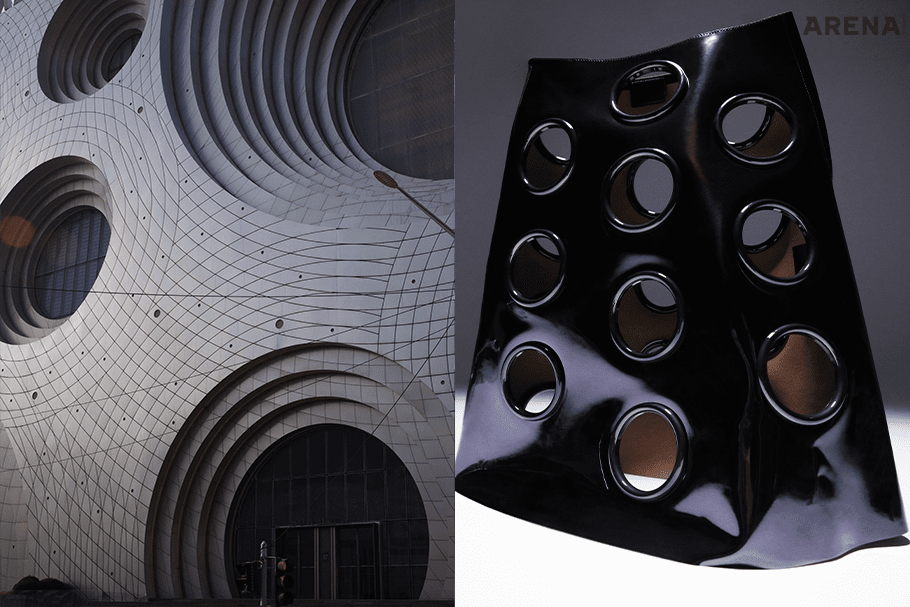 동그란 컷아웃 패턴의 입체적인 스커트 가격미정 프라다 제품.