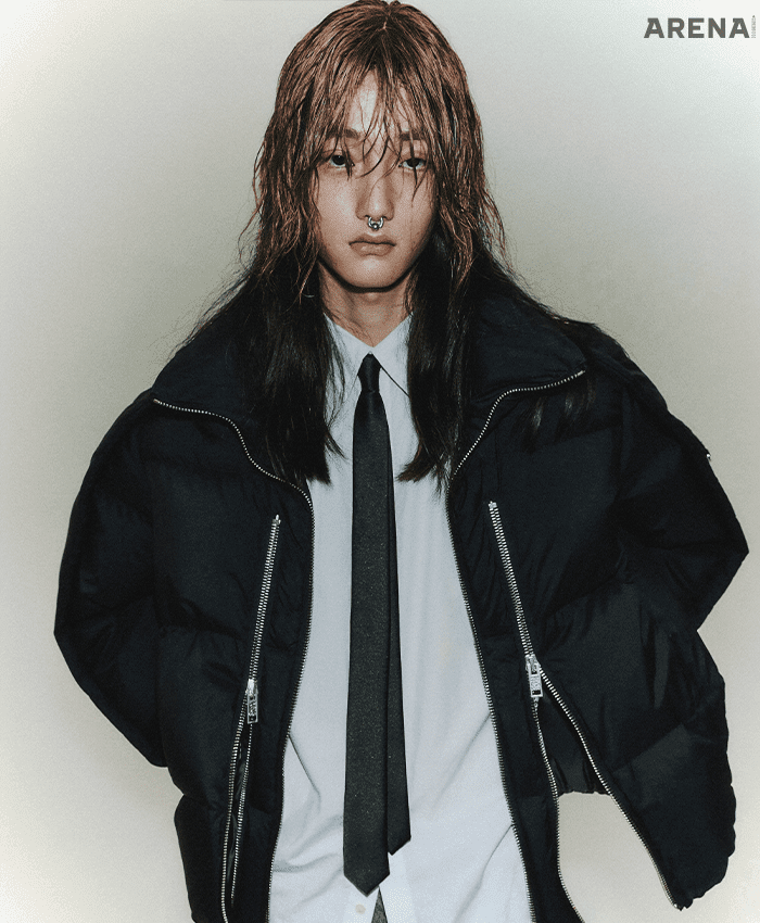 지퍼 디테일 푸퍼 재킷 337만원·셔츠 108만원 모두 몽클레르×윌로우 스미스, 노즈 커프 가격미정 발렌시아가, 타이 에디터 소장품.