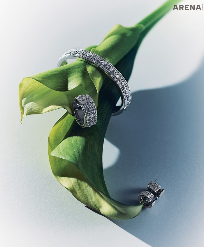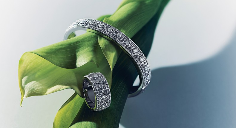 (위부터) 정교하게 세공된 패턴과 다이아몬드로 장식한 마이 디올 브레이슬릿·마이 디올 링·마이 디올 이어커프 모두 가격미정 디올 파인주얼리 제품.