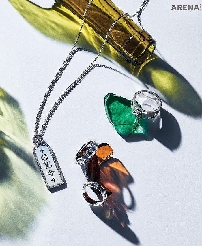 (위부터) 레 가스통 비통 라지 태그 펜던트 네크리스·앙프렝뜨 링·화이트 골드 밴드에 다이아몬드를 규칙적으로 세팅한 르 다미에 루이 비통 링 미디엄 사이즈 모두 가격미정 루이 비통 제품.
