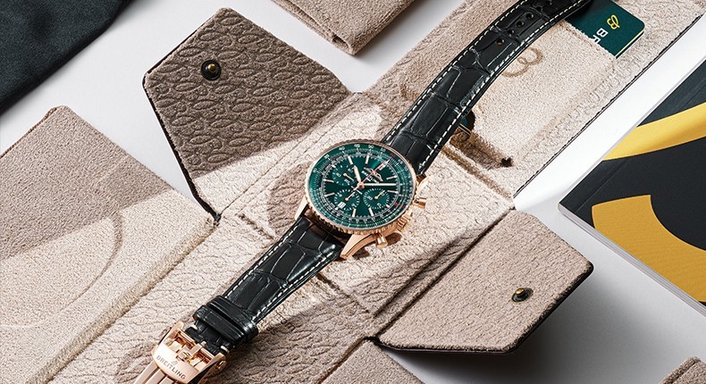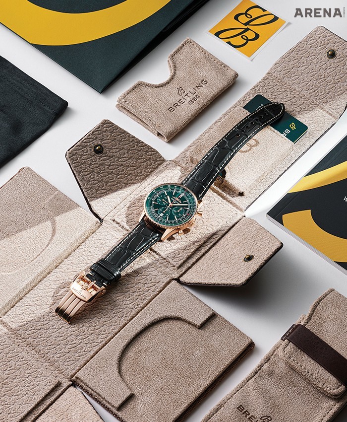 이 정도면 브라이틀링을 대표하는 모델로 불릴 만하다. 오직 한국에서만 만날 수 있는 한정판 모델로 내비타이머 B0 1 크로노그래프가 나섰다. 그린 선레이 다이얼과 레드 골드 케이스의 근사한 조합은 이 시계가 전통적인 파일럿 워치라는 사실을 잊게 할 정도. 스포츠 워치의 맹렬함에 드레스 워치 같은 고급스러움을 더했다. 70시간 파워 리저브가 가능한 칼리버 브라이틀링 01을 탑재한 사실은 변함없다.