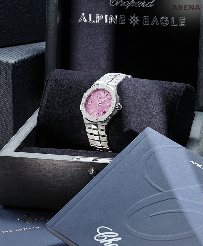 시계를 고를 때 유심히 봐야 할 것 중 하나가 해당 모델이 다양한 변주로 출시되느냐다. 이는 그만큼 인기 있는 모델이라는 방증이니까. 쇼파드의 알파인 이글이 그렇다. 케이스 지름의 변화, 다양한 소재의 적용, 새로운 기능의 추가가 끊임없이 이루어진다. 달콤한 향이 풍길 것 같은 과감한 핑크 컬러 다이얼은 알파인 이글이 성별을 넘어 꾸준히 인기를 누리고 있다는 기분 좋은 증거다.