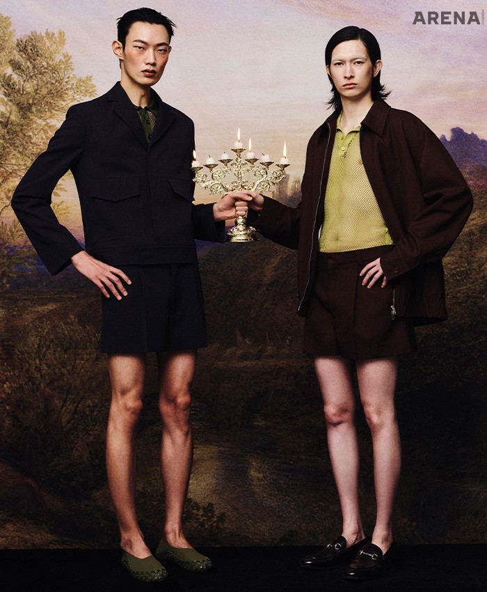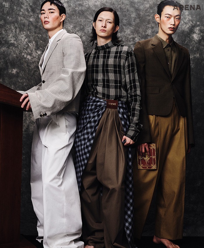 (왼쪽부터) 크롭트 싱글브레스트 재킷·셔츠·오버사이즈 팬츠 모두 가격미정 로에베 제품.