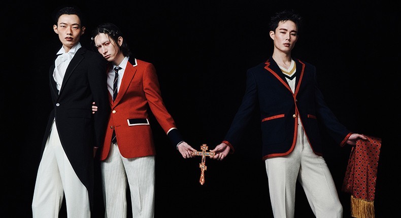 (왼쪽부터) 테일 코트·셔츠·보타이·울 팬츠 모두 가격미정 셀린느 옴므 제품.