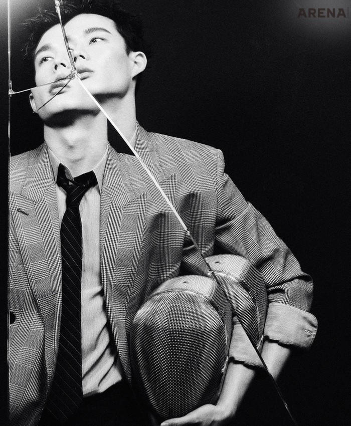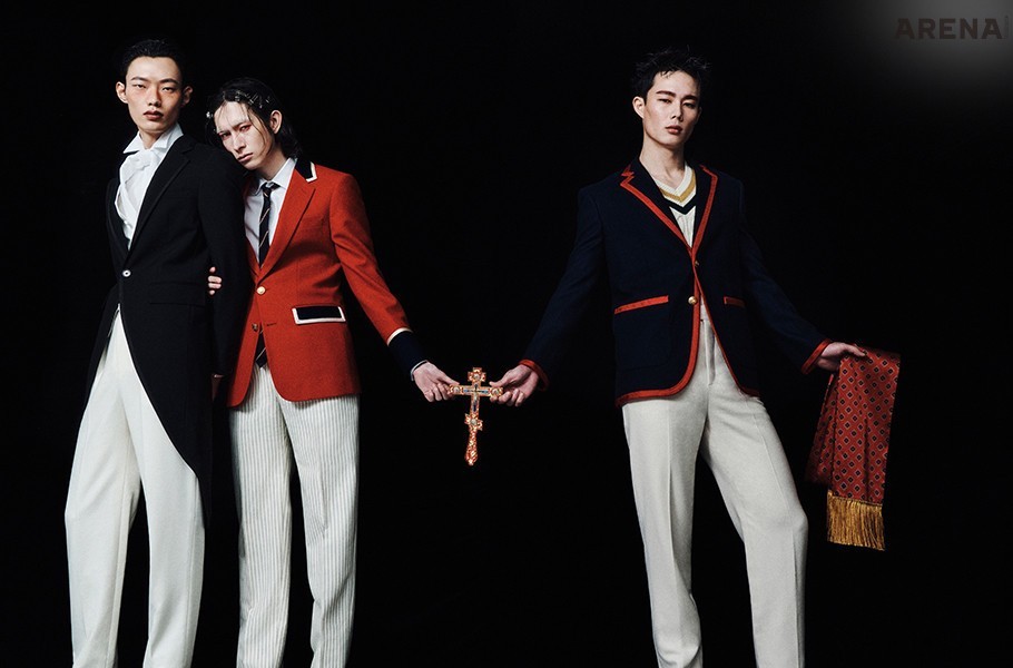 더블브레스트 재킷·셔츠·핀 스트라이프 타이 모두 가격미정 생 로랑 by 안토니 바카렐로 제품.