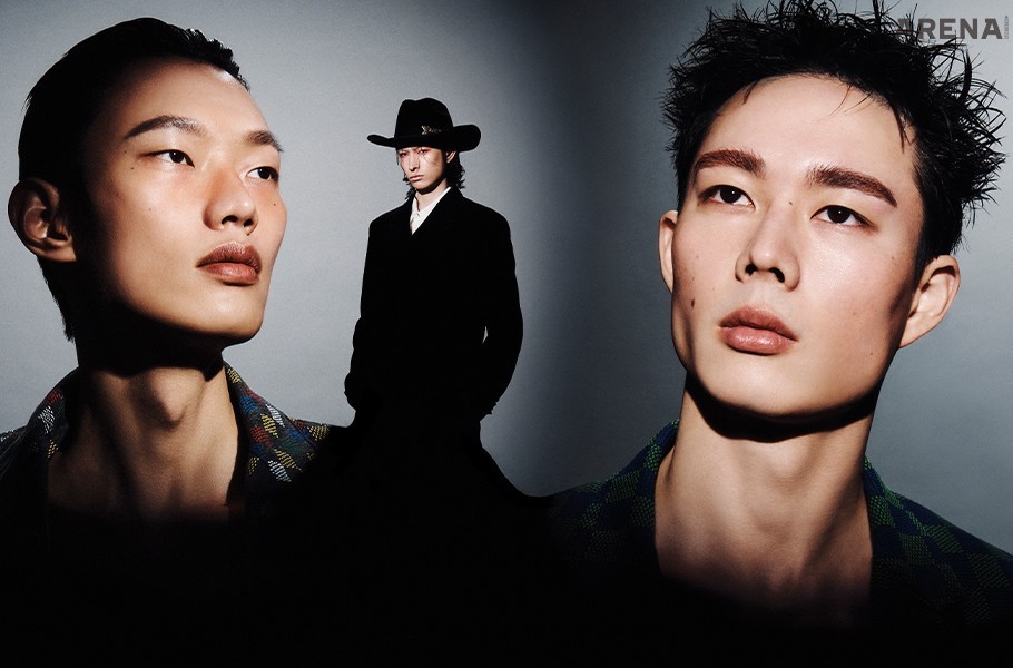 벨벳 소재 더블브레스트 재킷·팬츠·로고 장식 카우보이 해트 모두 가격미정 루이 비통 제품.