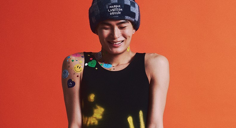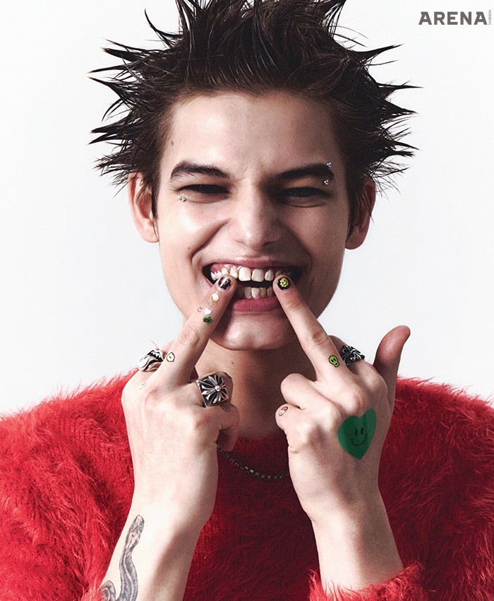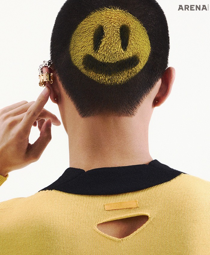 폴로셔츠·스트라이프 셔츠·와이드 팬츠·타이·뾰족한 로퍼·노즈 피어싱·비니 모두 가격미정 발렌시아가 제품.