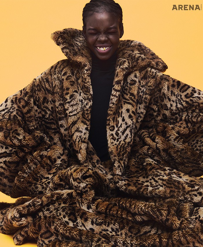 레오퍼드 패턴 퍼 코트·맥시스커트·검은색 터틀넥 톱 모두 가격미정 발렌시아가 제품.