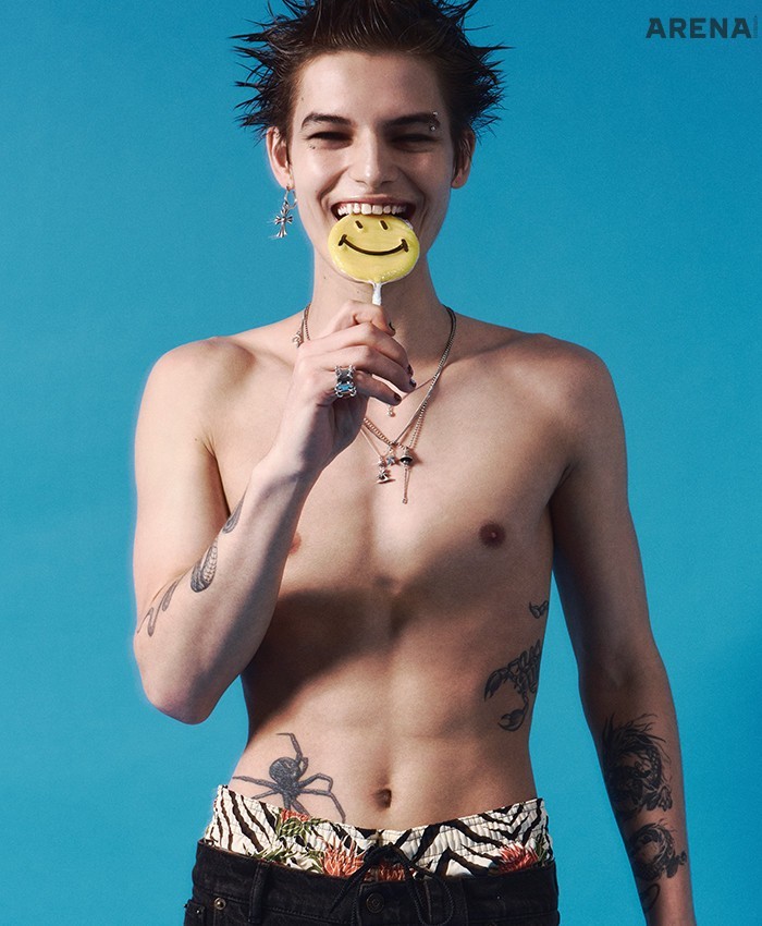 지브라 패턴 스윔 쇼츠 가격미정 셀린느 옴므, 브라운 워싱 디테일 데님 팬츠 52만5000원 에곤랩 by 아데쿠베, 크로스 모티브 이어링 가격미정 크롬하츠, 종 펜던트 네크리스 24만8000원·별 펜던트 네크리스 26만8000원·야자수 펜던트 네크리스 26만8000원·스마일 페이스 펜던트 네크리스 18만1000원 모두 불레또 제품.