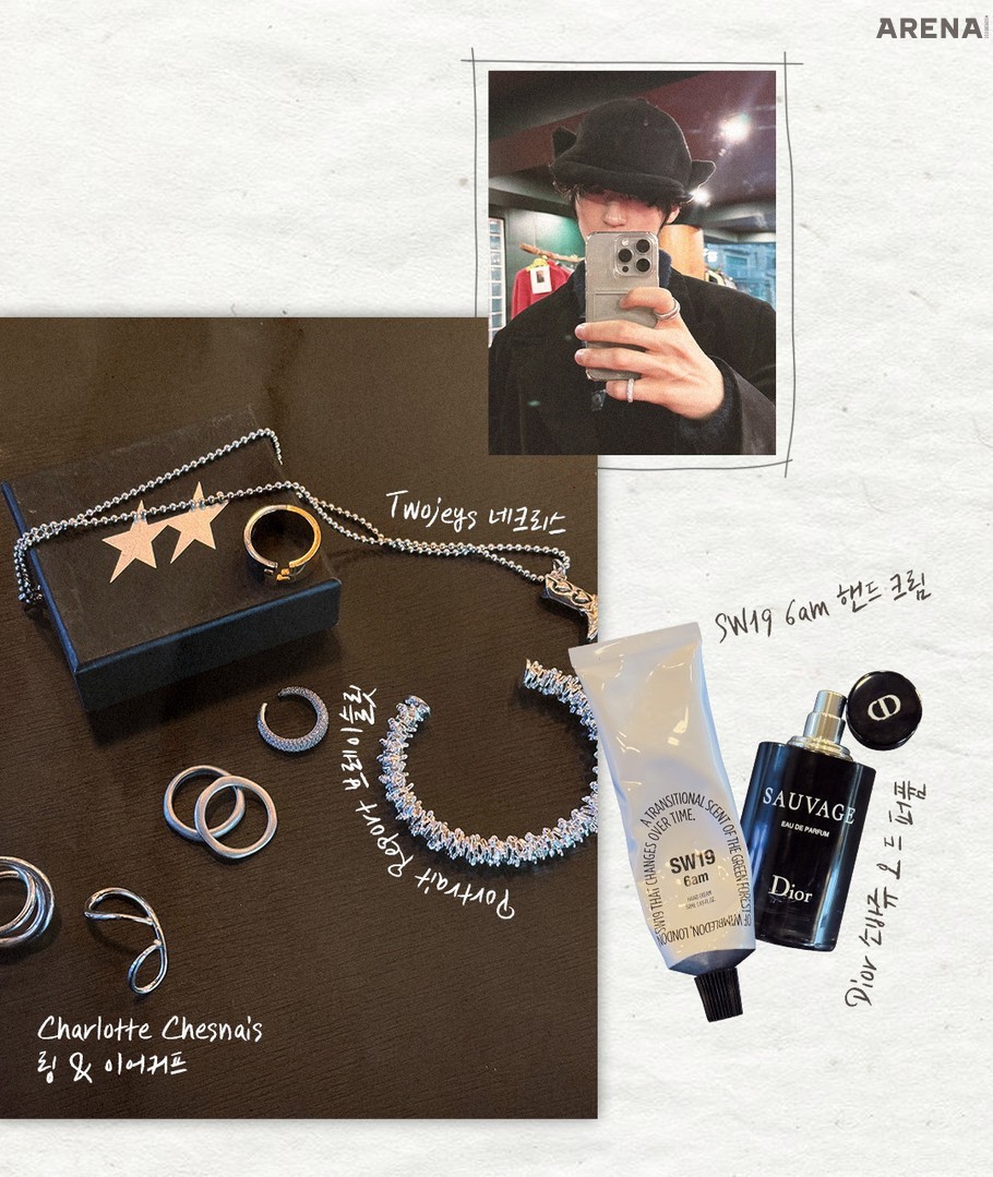 스타일링을 할 때 모자로 포인트를 주는 것을 좋아해요. 갖고 있는 모자가 꽤 많은데, 그중에서도 가장 좋아하는 아이템은 ‘슈프림’의 비니와 ‘레스트앤레크레이션’의 모자입니다. ‘슈프림’ 비니는 착용했을 때 얼굴이 정말 작아 보이고, ‘레스트앤레크레이션’의 모자는 귀까지 덮을 수 있어 요즘처럼 추운 날씨에 제격이죠.