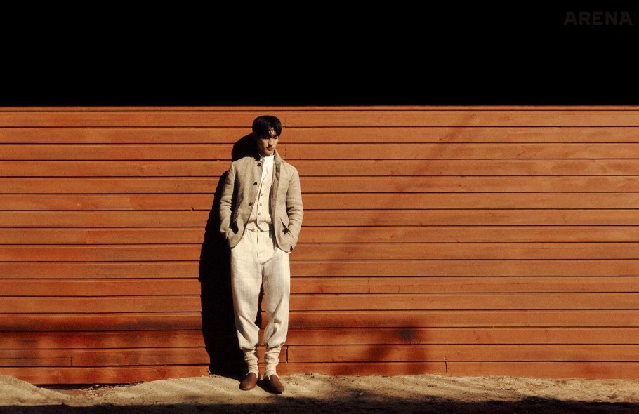 리넨 소재 로드스터 재킷·카디건·셔츠·스트라이프 팬츠·양말·슬립온 슈즈 모두 가격미정 로로피아나 제품.