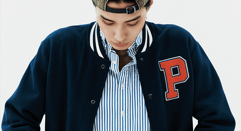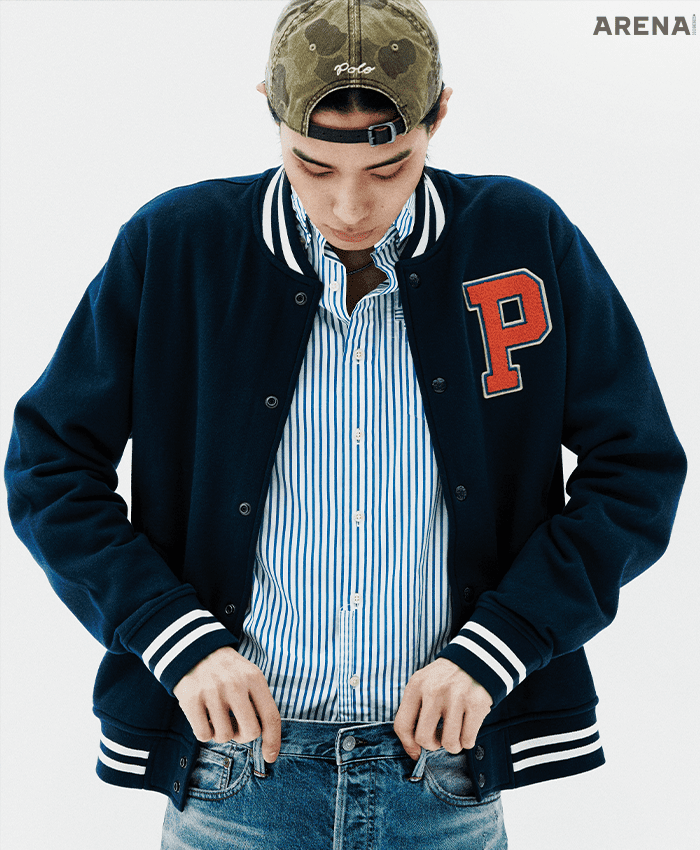 레터맨 패치 장식의 베이스볼 재킷·스트라이프 셔츠·데님 팬츠·볼캡 모두 가격미정 폴로 랄프 로렌 제품.