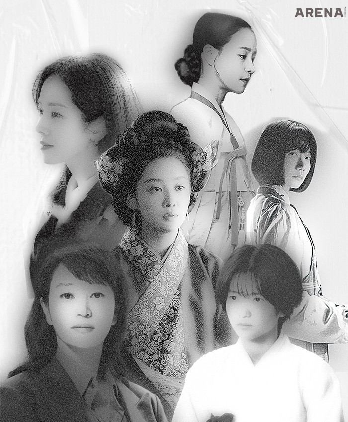 그렇다면 한국에서 만든, 영화 말고 드라마를 보자. 가장 먼저 <대장금>이 떠오른다. 2003년 드라마다. 이영애의 역작. 궁녀가 성장하고 또 성장해 어의녀가 되기까지를 그렸다. 무려 54부작으로. 2009년에 방영한 <선덕여왕>도 있다. 한국사 최초의 여왕과 그에 맞서는 여성 정치가 미실의 이야기. 드라마 제목은 선덕여왕인데 미실 역을 맡은 고현정이 더 기억에 남았다. 두 여성을 중심에 둔 정치 사극이니 더 특별했다. 그렇다. 이런 이야기는 특별했다. 보편적이지 않고 특별히 기획한 드라마라고 할 수 있다. 그런 이유로 더 조명받았다. 반응도 뜨거워서 더 특별해졌다. 그 이후로도 여성 서사 자체는 여럿 있었다. 아니, 보편적으로 늘어났다. 액션을 펼치는 여성 같은 특별한 기획이 아니어도 여성의 삶 자체를 조명하는 드라마도 많아졌다. 여성들의 우정(<멜로가 체질>(2019))이나 세 자매가 풀어내는 스릴러(<작은 아씨들>(2022)), 커리어우먼의 성공기(<대행사>(2023)) 등 꾸준히 이어졌다. 그 사이 사회 분위기도 달라졌으니까. 여성 서사를 다룬 작품 수가 늘어난 건 익히 아는 사실이다. 중요한 건 앞서 주목한 동시다발적 출현이다. 물론 이들의 방영 기간이 몰리는 건 의도보다 우연이다. 제작 기간이 다르다. 방영하는 채널의 사정도 있다. 전략적으로 여성 서사 대여섯 편을 같은 시기에 순차적으로 풀어내는 건 무리다. 그럼에도 몰렸다. 우연이지만 뚜렷한 현상을 만들어냈다. 이건 중요하다. 이야기를 만들어가는 과정 얘기다. 기획부터 제작, 방영까지 여성 서사를 선택했다는 의미다. 동시다발적으로. 여성 서사로 풀어내는 이야기가 매력적으로 다가왔다는 의미이기도 하다. 그렇게 다채롭게 발화했다.