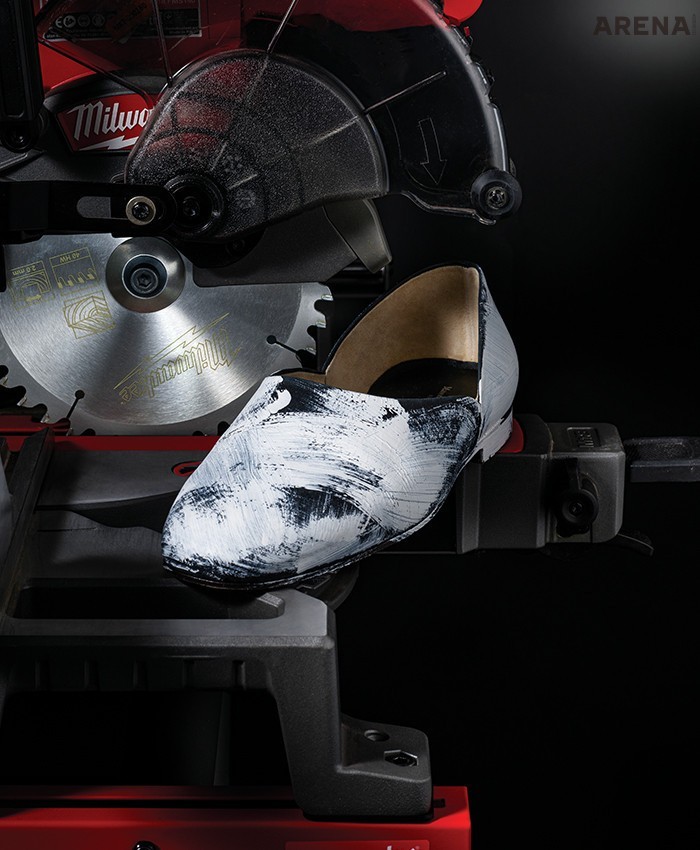 갑피 전반에 과감한 브러시 터치를 더한 슬리퍼 가격미정 메종 마르지엘라, 7.5인치 베어툴을 탑재한 18V 퓨얼 슬라이딩 각도 절단기 가격미정 밀워키 제품.