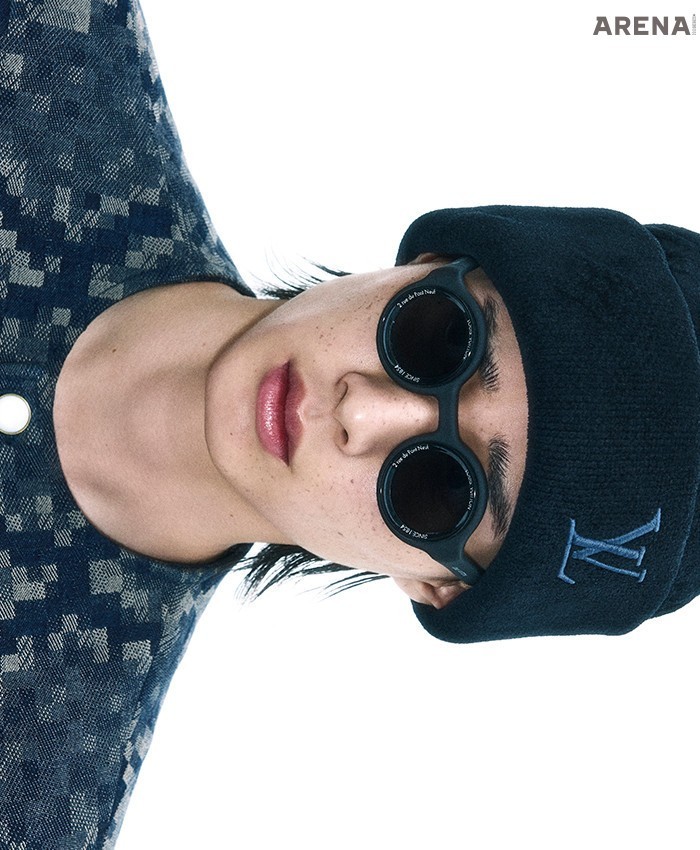 카메라 렌즈의 형태를 본뜬 라운드 프레임 선글라스·칼라리스 재킷·비니 모두 가격미정 루이 비통 제품.