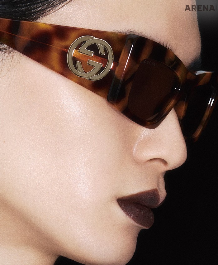 볼드한 토터스셸 프레임에 메탈 로고를 장식한 선글라스 67만원 구찌 by 케어링 아이웨어 제품.