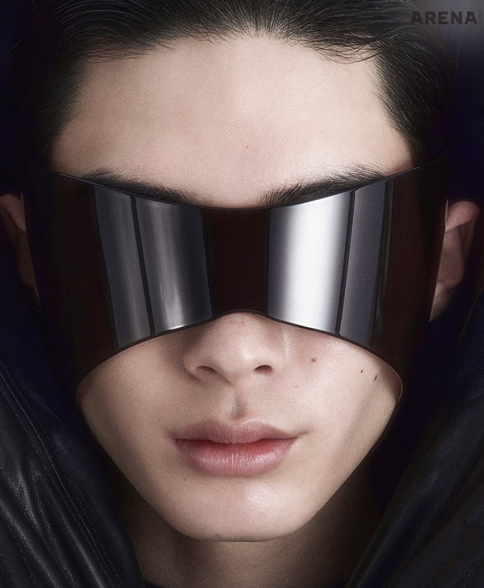 아이 마스크 형태의 풀실드 선글라스 205만원 발렌시아가 by 케어링 아이웨어, 가죽 재킷 가격미정 발렌시아가 제품.