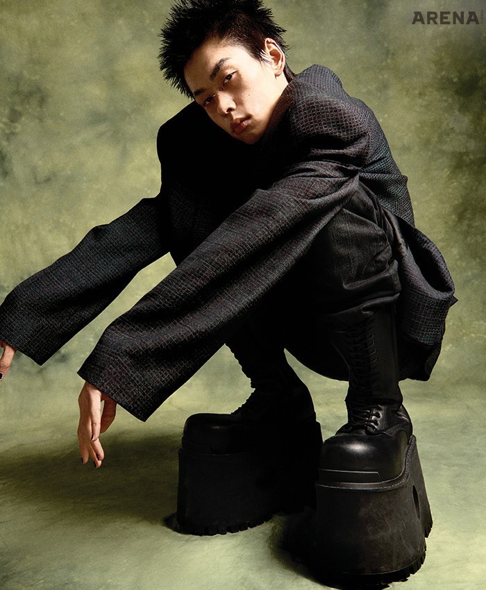 박스 핏 테일러드 재킷·데님 팬츠·플랫폼 부츠 모두 가격미정 발렌시아가 제품.