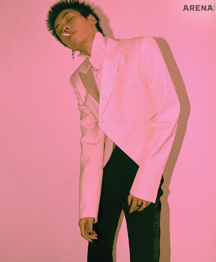크롭트 턱시도 재킷·탭 칼라 셔츠·턱시도 팬츠·실버 링·장미 이어링 모두 가격미정 맥퀸 by 션 맥기르 제품.