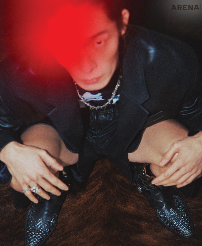 오버사이즈 레더 재킷·레더 쇼츠 모두 가격미정 코치, 크롭트 티셔츠 13만5000원·메탈 비즈 네크리스 23만5000원 모두 604서비스, 오른손 약지에 착용한 실버 링·소지에 착용한 십자가 밴드 링 모두 가격미정 크롬하츠, 웨스턴 부츠 에디터 소장품.