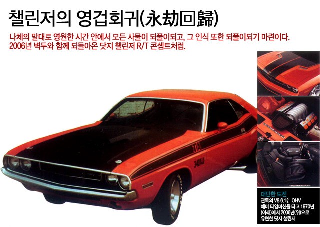 되풀이되게 마련이다. 2006년 벽두와 함께 되돌아온 닷지 챌린저 R/T 콘셉트처럼.