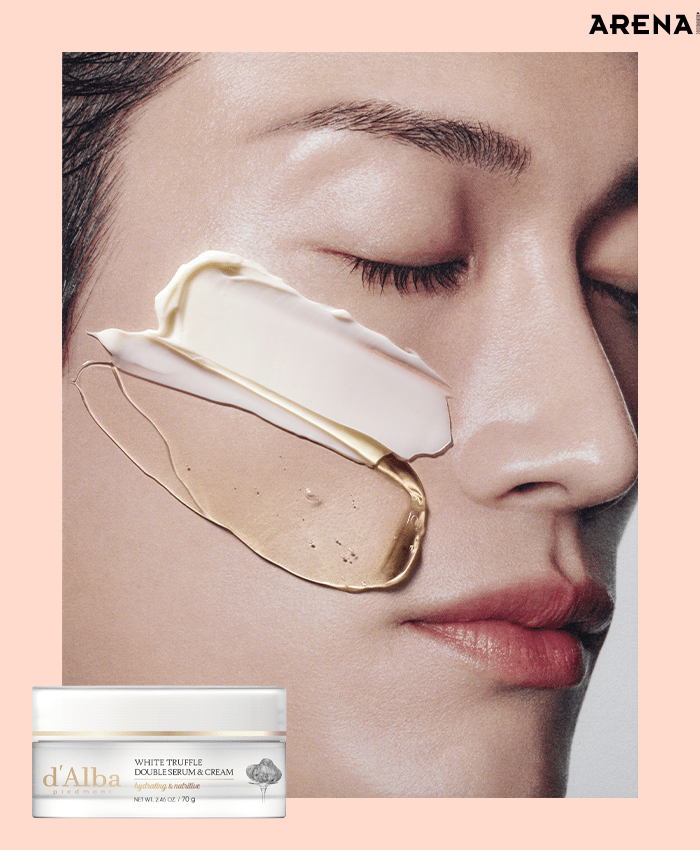 피부 상태에 따라 비율을 조절해 사용할 수 있도록 두 가지 제형을 고루 담았다. 수분을 공급하고 예민해진 피부를 진정시키는 촉촉한 아쿠아 세럼과 영양과 탄력에 도움을 주는 쫀쫀한 인텐스 크림이 시너지 효과를 내는 화이트 트러플 더블 세럼 앤 크림 70g 7만8000원 달바 제품.