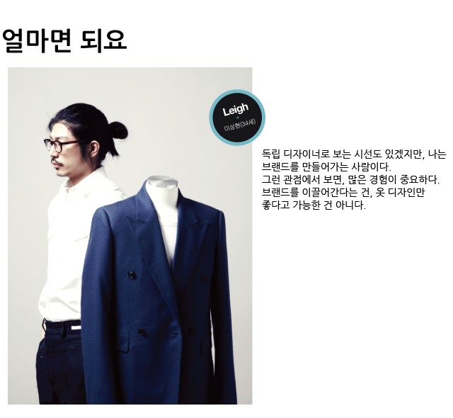 독립 디자이너로 보는 시선도 있겠지만, 나는 브랜드를 만들어가는 사람이다. 그런 관점에서 보면, 많은 경험이 중요하다. 브랜드를 이끌어간다는 건, 옷 디자인만 좋다고 가능한 건 아니다. 작지만 회사이므로 경험과 경영자 마인드, 그리고 다양한 분야에 관심을 갖는 게 중요하다. 세상 돌아가는 것에도 많은 관심을 가져야 한다. 아무리 생각을 해봐도 한 브랜드에는 대표라는 사람의 색이 많이 들어갈 수밖에 없다. 그런 면에서 자기 자신을 내보이게 되므로 그런 것에 대한 준비도 많이 해야 한다.