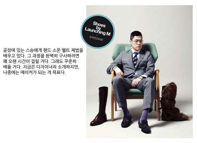우리나라엔 남자 신발이 정말 없다. 나 또한 신고 싶은 게 별로 없어서 하나씩 만들기 시작했다. 그러다 보니 시장이 보이더라. 우리나라는 신발 만드는 기술은 수준급인데, 디자이너 감각은 거기에 미치지 못한다. 대량생산에 밀려 장인의 수가 현격히 줄었다. 우리나라 장인들이 일본으로 가서 일하고 있다. 그 수도 굉장히 많다. 현재의 한국 구두 시장의 분위기를 바꿀 수 있을 거라 생각했다.
