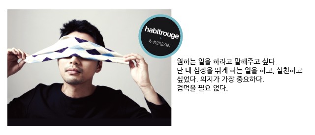 새로운 디자인 그리고 새로운 남성상을 제시하는 게 내 역할인 것 같다. 우리나라 남자들은 본인의 의지와는 상관없이 정형화된 스타일을 은근히 강요받고 있다. 내 자유의지와는 상관없이 좁은 범위 안에서 움직인다. 일례로 셔츠와 면바지를 깔끔하게 입는 게 남자의 바른 룩처럼 생각된다는 것이다. 나를 표현하는 건 인생에서 굉장히 중요하고 행복한 일이다. 난 좋다 나쁘다의 관점이 아닌 남자들이 아직 닿지 못한 미지의 영역을 찾아가고 있다. 남자들의 영역을 확장하는 새로운 디자인을 하고 싶다.