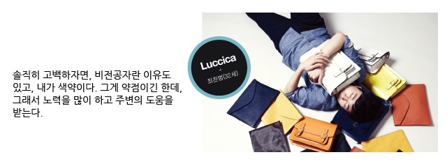 경영학도였고, 숫자를 좋아하다 보니 정직하면서도 기본적인 걸 좋아한다. 그래서 내가 만드는 가방엔 디테일이 별로 없다. 솔직히 고백하자면, 비전공자란 이유도 있고, 내가 색약이다. 그게 약점이긴 한데, 그래서 노력을 많이 하고 주변의 도움을 받는다. 그래서 좀 더 노력이 많이 첨가된 가방이라 말하고 싶다.