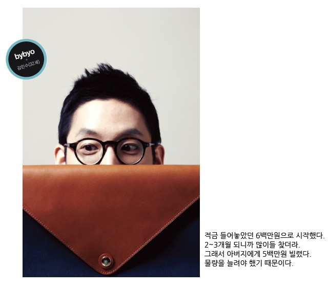 카메라 가방을 만들었다가 망할 뻔했다. 워낙 가격 경쟁이 치열해서 쉽지 않더라. 부모님이 의류 쪽 일을 하신다. 그래서 많이 영향을 받았고, 들고 싶은 가방 한번 만들어보자는 마음으로 시작했다.