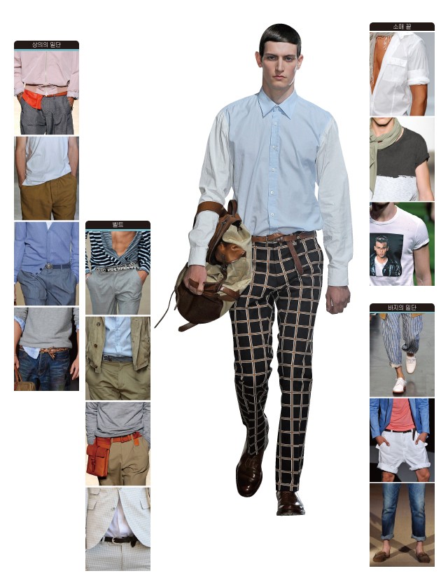 여름엔 겉옷 없이 티셔츠나 셔츠 같은 이너를 바지 안으로 넣어 입는 건 거의 대부분 남자들이 선호하는 기본 스타일이다. 그러다 보니 매일 똑같아 보이는 스타일에 지겨울 때가 많다. 티셔츠와 바지, 셔츠와 바지의 매치가 다르지 않으니 말이다. 그럴 땐 여기 디자이너들의 스타일링처럼 언밸런스한 라인을 만드는 거다. 셔츠 한쪽은 바지 안으로 넣고 다른 한쪽은 빼 입거나, 티셔츠는 사선 라인으로 바지 안에 집어넣는 거다. 카디건도 똑같은 방식으로 스타일링해보자. 평범했던 스타일이 특별하게 변한다.