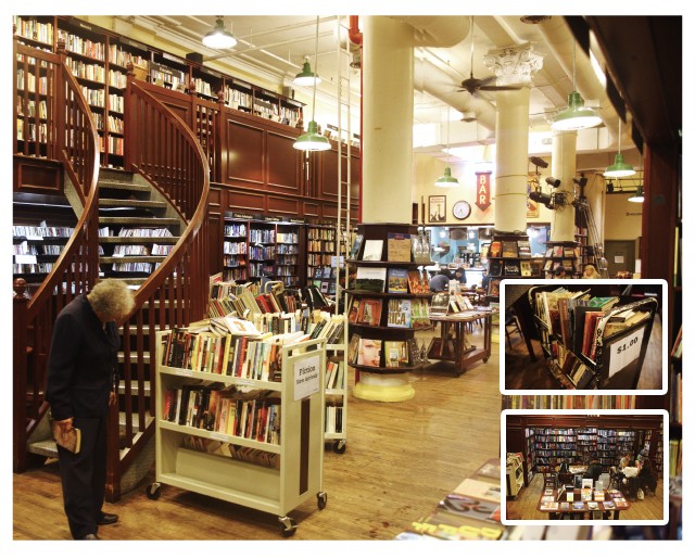 북 카페라는 명칭이 붙어 있다고 해서 커피를 주로 팔고, 책은 한쪽에 몇 권 간신히 붙어 있는 한국식 풍경을 상상해서는 곤란하다. 비록 최근 들어 현대미술의 중심이 서서히 베를린으로 넘어가고 있다고는 하나, 여전히 뉴욕은 ‘세계 문화 수도’의 위치를 굳건히 지키고 있는 도시가 아니던가. 더군다나 이곳은 홈리스와 에이즈 환자를 위해 중고 책과 옷을 파는 곳. 따라서 서가에 꽂혀 있는 모든 책들은 뉴요커, 또는 뜻있는 사람들이 기증한 것들이다. 커피를 내리는 직원, 계산대에 서 있는 이들도 모두 자원봉사자. 더 큰 놀라움은 자원봉사단체라면 즉각 떠오르는 특유의 지리함과 퀴퀴함이 이곳에서는 전혀 느껴지지 않는다는 것이다. 누구나 발랄하고, 진지하게 대화를 나누고 책을 찾고, 읽어나갈 수 있는 곳. 1달러에 판다는 표지가 붙은 수레조차 예술 작품과 쏙 빼닮은 이 곳에 과연 더 바랄 게 있기나 할까?