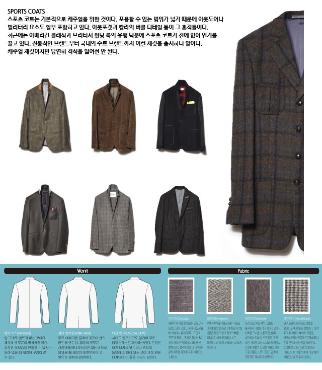올 시즌 가장 많이 보이는 스포츠 코트의 형태다. 옅은 갈색 글렌 체크와 칼라 안쪽, 팔꿈치 부위의 오렌지색 패치 포인트가 경쾌한 조화를 이루는 재킷이다. 빈티지한 안감도 놓치지 말자. 20만원대.