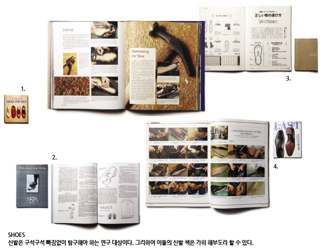 일본 여행을 갔을 때 시모기타자와의 작은 서점에서 발견한 책이다. 일본 에스콰이어에서 발행하는 구두 잡지인데, 지금은 폐간되어 발매되지 않는다. 그러니 아주 희귀한 책인 셈이다. 이 책은 남자 구두의 모든 것을 매달 섬세하게 다루었다. 구두의 시작이라 할 수 있는 다양한 제작 공정과 구두의 종류 및 특징, 슈케어 같은 기본기부터 트렌드, 스타일링 팁까지 재기발랄하게 구성해 보여주었다. 단순히 좋아하는 것에서 더 나아가 구두에 대해 이해하며 배우고 싶은 사람은 이 책을 통해 아주 쉽게 구두의 정석에 다가갈 수 있다. 물론 헌책방을 돌아다니는 수고로움을 감수한다면.