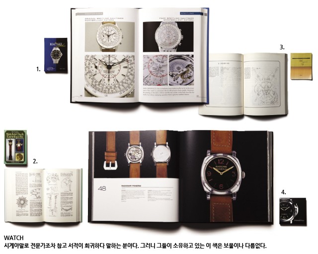 시계 기사를 쓰면서 궁금한 게 많아졌지만 한글로 된 책은 없었고 외국 책도 구입하기 쉽지 않았다. 때문에 출장 때마다 서점에 가서 시계 관력 책 코너를 뒤지곤 했다. 이 책은 런던에서 구입한 것으로 기억한다. 이름 그대로 시계 사전이다. 기계식 시계는 도저히 알 수 없는 기능들이 많기 때문에 시계 용어 사전이 필수다. 시계 관련 사전은 인터넷에도 있고 각 브랜드에서도 제공하지만 집대성본 하나쯤 가지고 있을 만하다. 이 책은 1950년에 발간해 1988년 세 번째 개정판이 나왔고 내가 소유한 책은 13쇄 판본이다. 60년이 넘도록 절판되지 않는 데는 그만한 이유가 있는데 무엇보다 용어 설명이 잘되어 있고 보기 좋은 일러스트가 많다. 특히 밸런스 휠의 합금 성분부터 핸즈의 종류, 시계 케이스의 형태 등을 표로 일목요연하게 분류해놓은 건 타의 추종을 불허한다.